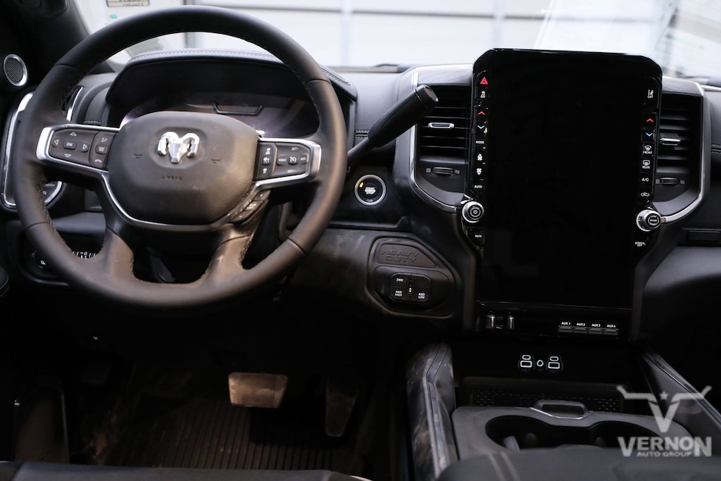 This 2025 Ram 2500 Laramie Mega Cab 4x4 is proudly offered by Vernon Auto Group. Sit back in comfortable heated black leather seats and hook onto your trailer with ease thanks to the rear-view backup camera. Navigate across the country with state of the art navigation and never miss a turn again. Tackle the toughest jobs with the smooth 6.7L I6 HO Cummins Turbo Diesel Engine. Call us today for a deal you will not want to miss out on!