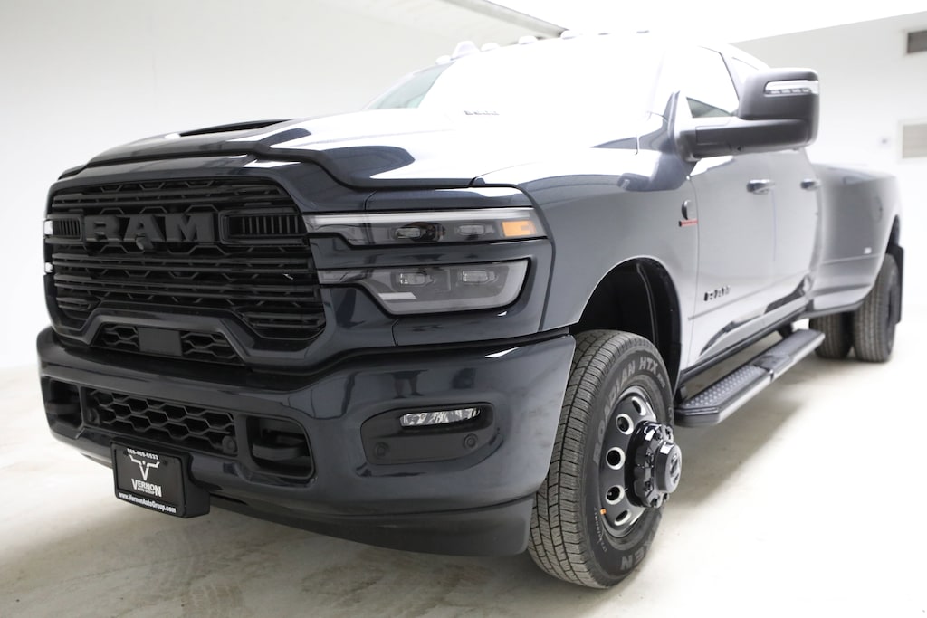 This 2026 Ram 3500 DRW Laramie Night Edition Crew Cab 4x4 is proudly offered by Vernon Auto Group. Hit the streets with the smooth 6.7L I6 HO Cummins Turbo Diesel Engine. Relax back in luxurious heated/cooled leather seats and create a new path with state of the art navigation. Experience a new kind of driving with adaptive cruise control and stay connected through WiFi hotspot capabilities. Call us today for a deal you will not want to miss out on!