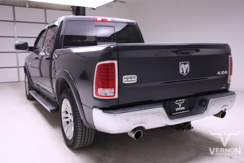 This 2016 Ram 1500 Laramie Longhorn Crew Cab 4x4 with only 102,438 miles is proudly offered by Vernon Auto Group. Take on the open road with the dependable 5.7L V8 Hemi Engine. Sit back in comfortable heated/cooled leather seats and create a new path with state of the art navigation. Check out the sites through the built in power sunroof and connect compatible devices with Bluetooth technologies. Call us today for a deal you will not want to miss out on!